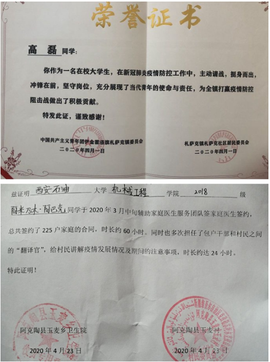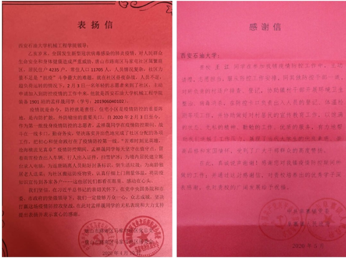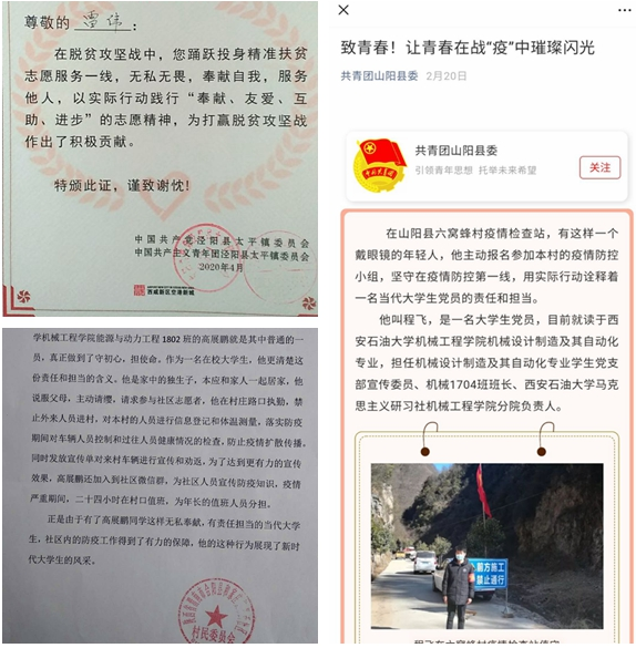 抗击疫情,义不容辞。他们主动向当地村委、社区报到,自愿加入抗疫青年志愿者队伍当中,服从分配、尽职尽责,在做好自身防护的前提下,他们积极有序地参与社区执勤、协助工作人员进行体温测量、信息登记、防疫宣传、生活物资配送等工作。他们守岗有责、守岗尽责的积极作为受到了当地各级政府、社区(村委)的高度肯定,当地媒体也对他们的事迹进行了宣传报道。