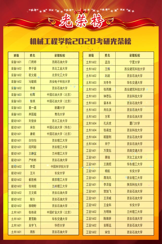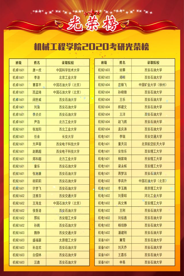 2020年,公司考研学子喜讯频传。经统计,今年公司共约200余人报名参加硕士研究生考试,其中107名同学已被中国科学技术大学、北京工业大学、西安交通大学、西安电子科技大学、中国石油大学(北京)、中国石油大学(华东)等院校录取。较去年增加23人,提高近5个百分点,其中985,211名校录取40余人,实现了学院近几年考研历史上的新突破。