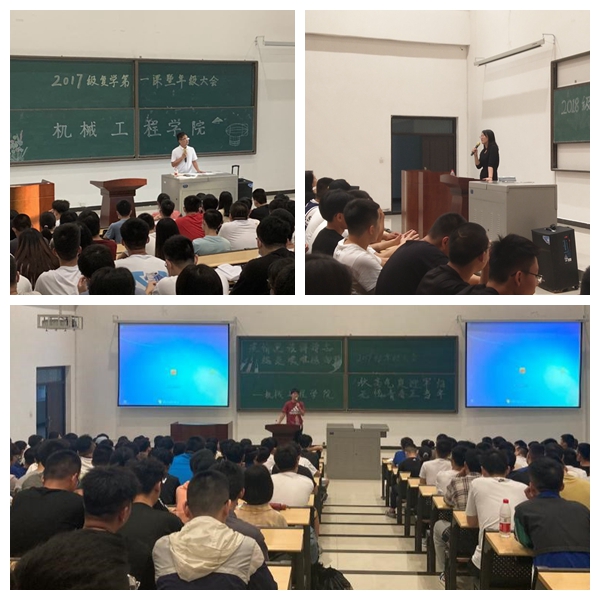 2019级大会上,邱迪老师首先对于上学期网课期间同学们对学院,学校工作的支持表示感谢,并对所有返校同学表示了欢迎。其次,邱老师向同学们介绍了疫情期间在校面对突发情况的应对方法,并提醒同学们在校期间做好个人防护工作,合理作息,健康饮食。最后,邱老师重点强调了开学前三周补考,正考以及9月份大学英语四六级考试的重要性,并要求同学们合理规划时间,树立学期目标。希望同学们不惧风雨,担当重任,播种青春之花,在不久的将来绽放在党和人民最需要的地方。2018级大会上,张靓老师强调了疫情期间学校管理制度,鼓励员工们合理安排时间,认真复习,积极应对第三周的期末考试和即将到来的四六级考试。同学们已经步入大三,应当对自己的老员工活和未来去向有明确的规划,张老师鼓励大家通过提升自己的专业技能来提高自己在考研和就业中的竞争力,为社会做贡献。2017级大会上,马武军老师首先强调了常态化疫情防控之下学校的管理规定,并嘱咐备战考研的员工注意劳逸结合,保持良好的作息习惯,向着自己的考研目标院校科学地指定复习计划。同时,对于准备就业的同学,马武军老师强调一定要有“先就业,再择业”的观念,在就业困难季中一定要提前谋划,根据自身实际量力而行。最后,对于学校新修订的学士学位授予细则马武军老师与同学们也作了提醒和说明,希望每位同学都能顺利毕业,拥有更加美好的未来。