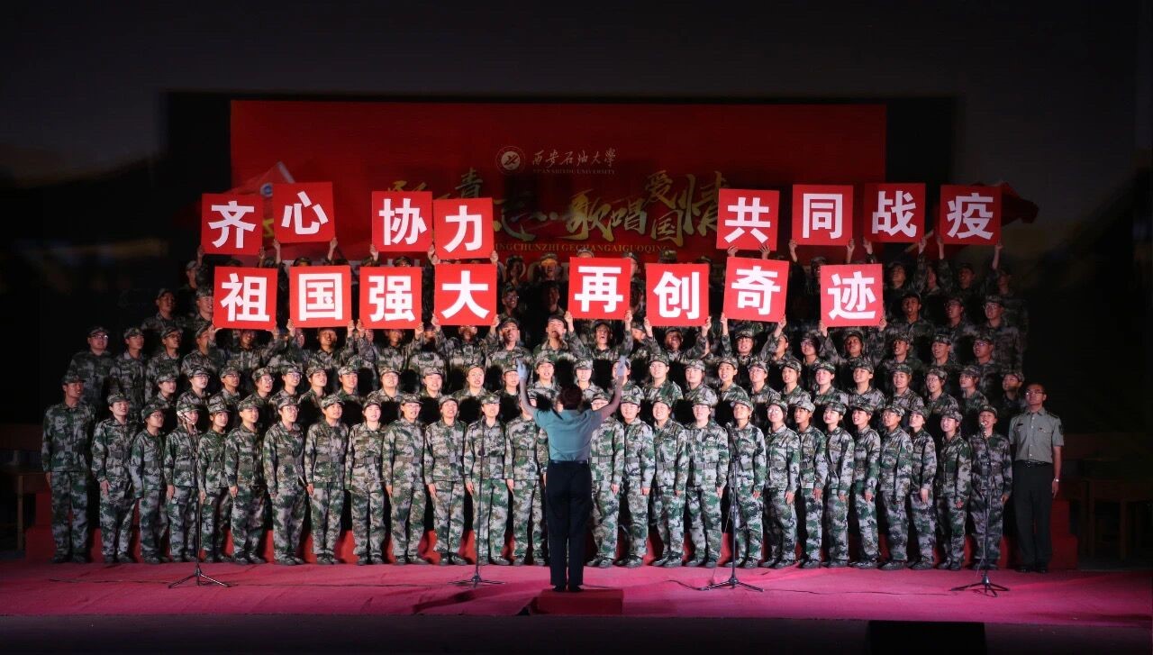 在26日的歌咏比赛中,公司合唱队的同学在台上用自己努力、用心练习的结果完成了对自己的超越,指挥铿锵有力、合唱高亢洪亮、朗诵感情饱满、旗帜奋力高扬。校歌是学校精神的灵魂,是学校传唱最广、最动听的旋律,是石大学子志愿献身石油行业、凝聚铁人精神的最生动的方式,同学们用整齐划一的校歌声展现了自己新石大人的自豪。在今年这个特殊的年份,我们突然遭遇新冠肺炎疫情,在党中央的坚强领导下,我们成功稳定疫情,率先复工复产复学,取得了举世瞩目的成就,同学们在《我和我的祖国》开始前的朗诵中对伟大抗疫战争进行了深情的总结,歌曲演唱融入了同学们至深至真的家国情怀,歌曲唱毕时,伴随着高举的标语牌,全体同学高声呼喊三遍“齐心协力,共同战疫,祖国强大,再创奇迹”的口号,将全场的情绪升华至高潮。