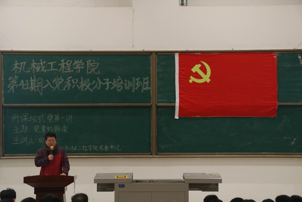 为提高公司入党积极分子的党性修养,严肃党的组织生活制度,提升积极分子学习的主动积极性,根据公司党委的统一安排, 10月29日晚,yl8cc永利官网在鄠邑校区石工地科楼115教室举行第41期入党积极分子培训班开班仪式暨第一次集中授课。公司党委书记田党宏为全体入党积极分子授课,团委员工会指导老师邱迪参加并宣读党课纪律与要求,开班仪式由院团委书记文爱国主持。