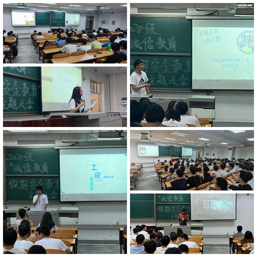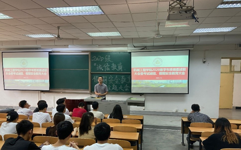 为贯彻《关于进一步加强本科生班级建设的实施意见》及学校关于期末考试诚信和安全稳定工作的相关安排,7月1日18:00,yl8cc永利官网2020级班级述职大会暨考试诚信与安全教育大会在鄠邑校区A139教室召开,会议由辅导员马舒宇主持,2020级全体同学参加。