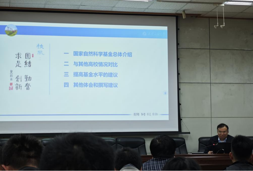 焦龙从“国家自然科学基金总体介绍、与其他高校情况对比、提高基金水平的建议、其他体会和撰写建议”四个方面展开指导,为申报国家自然科学基金项目教师提供了可参考性的积极建议和意见。