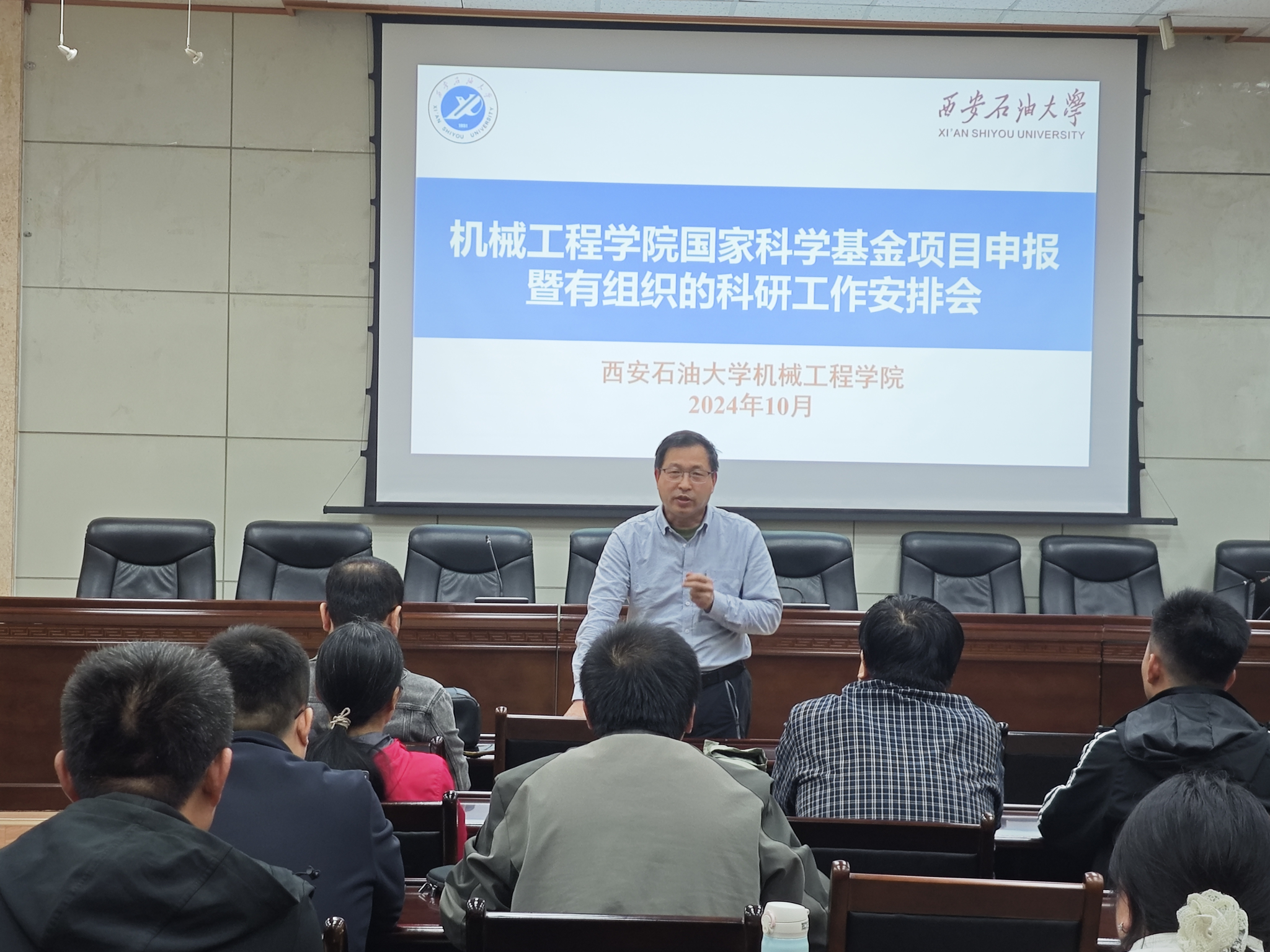 2024年10月30日下午,yl8cc永利官网在雁塔校区第三会议室组织召开国家自然科学基金项目申报暨有组织的科研工作安排会。集团科研处副处长焦龙应邀到会指导,公司党委书记蔡建文、副经理崔璐及全体专业教师参会。会议由崔璐主持。