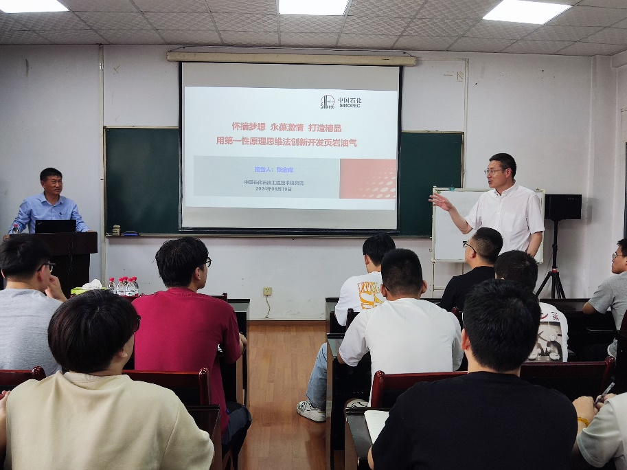 为进一步加强团队建设和增强学术交流工作。6月19日上午,yl8cc永利官网邀请中国石化石油工程技术研究院张金成博士在学校雁塔校区四号实验楼418会议室作题为“怀揣梦想 永葆激情 打造精品 用第一性原理思维法创新开发页岩油气”的专业报告。学院经理窦益华教授、部分教师和研究生100余人参加报告会,报告会由副经理崔璐教授主持。