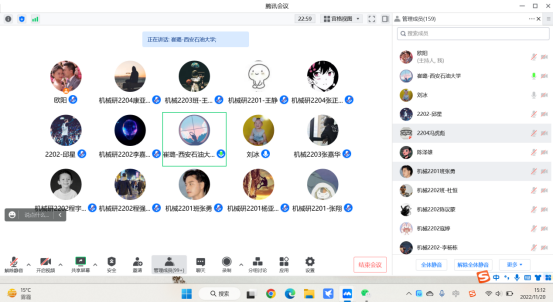 在全体研一员工线上座谈会上,公司副经理崔璐教授在听取同学们各类意见建议之后,重点强调了科研激励、成长规划、规矩意识三个方面。崔教授鼓励同学们进行学术型研究,积极参加各项学科竞赛,遇到问题及时与老师沟通,提高自身的科研能力。在成长规划方面,要求同学合理规划学习和生活,明确自身目标与方向,坚定信念,过一个充实的校园生活;崔教授强调,当下西安疫情严重,对于一些同学的焦虑与烦躁情绪表示理解,同时也希望各位同学务必配合相关防疫政策与要求,积极响应学校各方面的工作,培养自身规矩意识,存在问题及时反映,为疫情的好转贡献力量。
