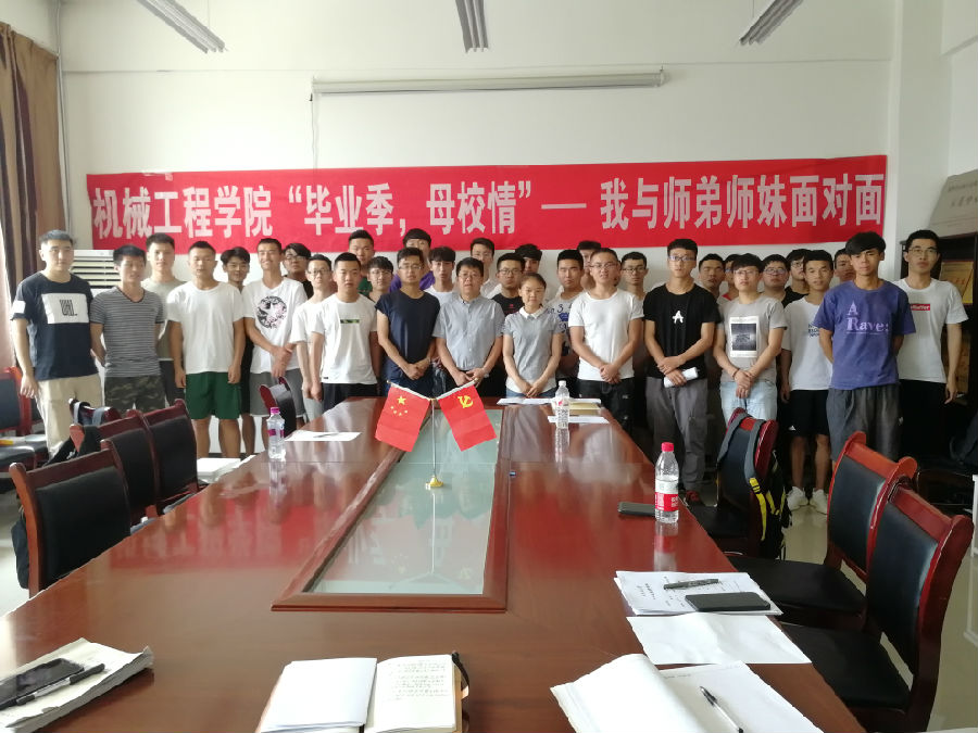 6月25日中午,yl8cc永利官网“毕业季,母校情”系列活动“我与师弟师妹面对面”活动在鄠邑校区机械材料楼431室举行,学院团委书记、学管办主任文爱国,2015级辅导员欧红娟,2019届优秀毕业生及低年级员工代表总计40余人参加,会议由2017级辅导员马武军主持。