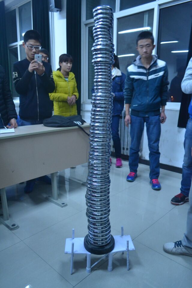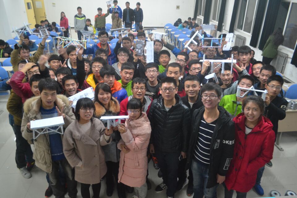 此次活动赛前精心准备,大力动员同学们参赛,充分调动了大家的积极性,开始一个小时之前教室已经坐满了人。活动开始后,机械科技协会会长鲁博辉简要介绍此次活动的比赛规则与比赛流程,提醒大家活动中间应该注意的主要问题。比赛开始后,每个比赛小组组长带作品上台解说自己作品的力学结构特点和创意,紧接着由工作人员准确测量出每组作品的的重量和承重量,整个比赛高潮迭起,参赛同学纷纷惊叹柔软的纸张借助巧妙力学原理,爆发出的惊人承载力。之后辅导员老师总结活动,强调动手能力对工科员工的重要性,鼓励同学们参加各种课外学科竞赛,同时学好材料力学,理论力学等机械基础学科,为以后更深层次的工作与学习打好基础。