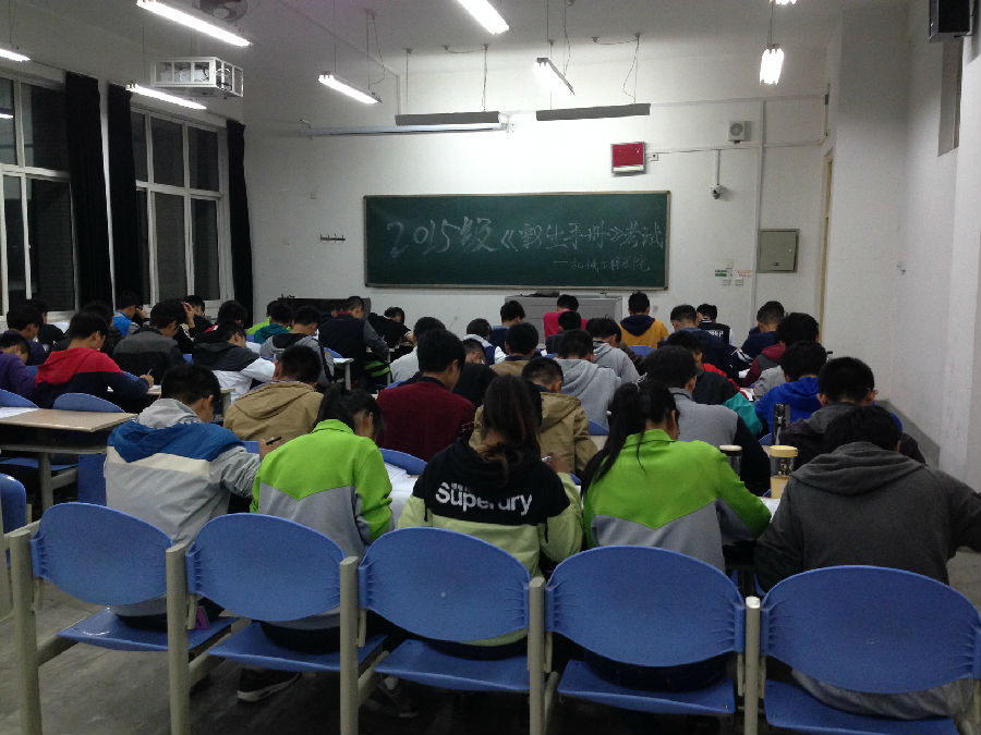 “十一”假期伊始,10月8日晚,yl8cc永利官网辅导员邵小康、乔晓老师,在学院团委员工会的协助下,组织2015级新生在A区学院自习室9室同步,举办“入学第一考”——新生手册入学考试。