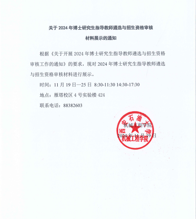 yl8cc永利官网关于2024年博士研究生指导教师遴选与招生资格审核材料展示的通知