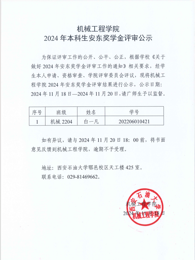 yl8cc永利官网2024年本科生安东奖学金评审公示