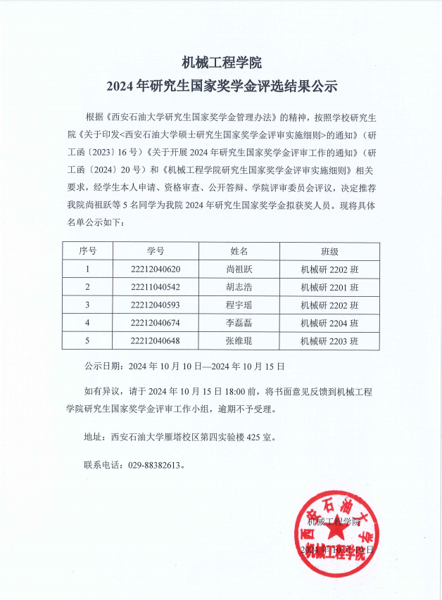 yl8cc永利官网2024年研究生国家奖学金评选结果公示