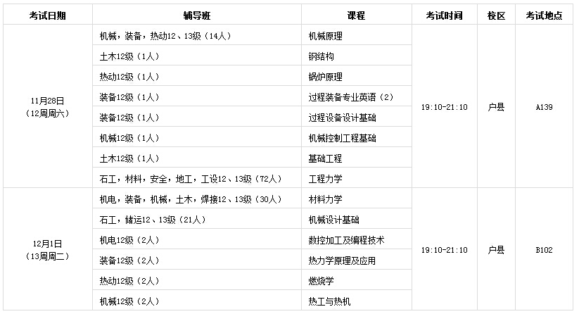 yl8cc永利官网2015/2016学年第一学期第12~13周课程辅导考试安排