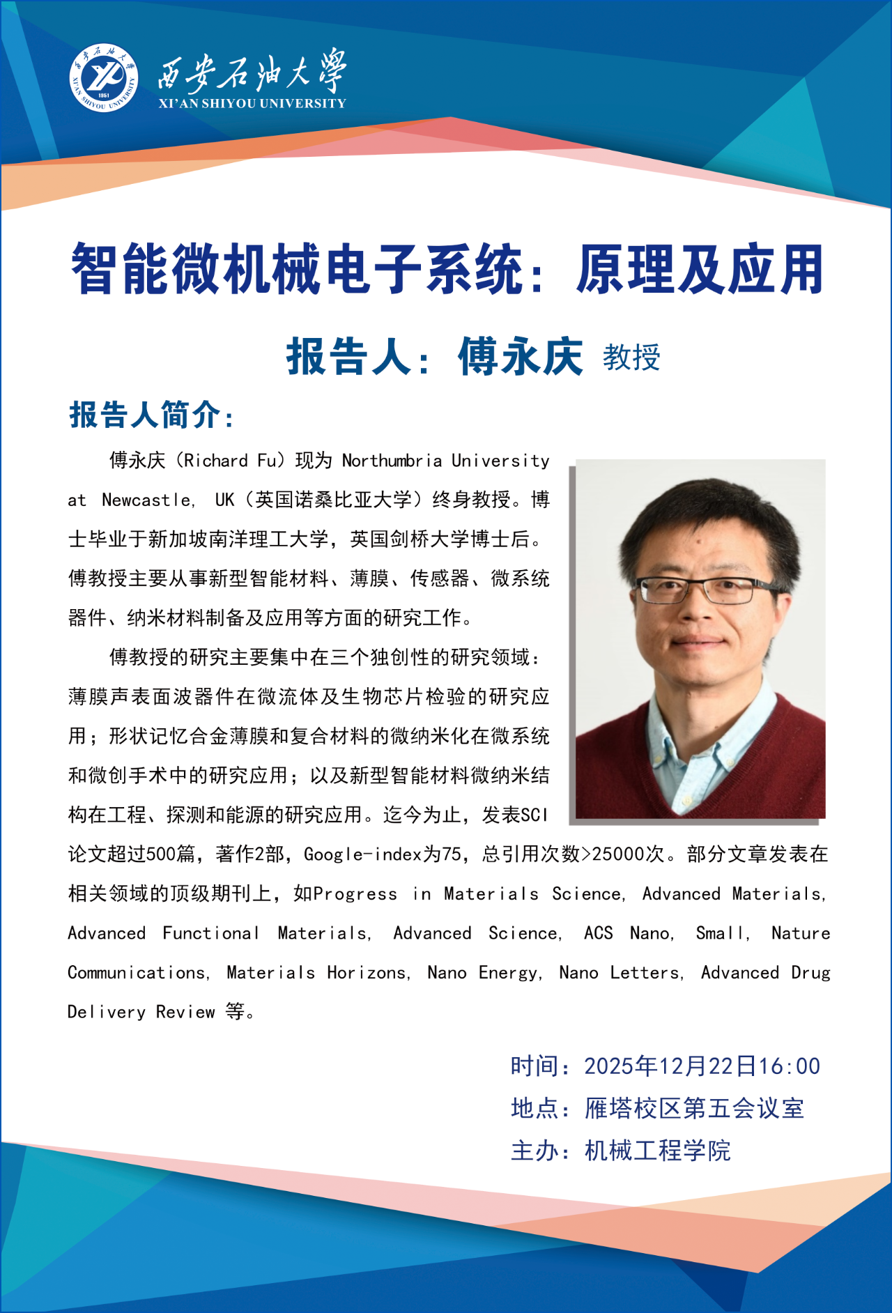 机械大讲堂第27讲——智能微机械电子系统:原理及应用